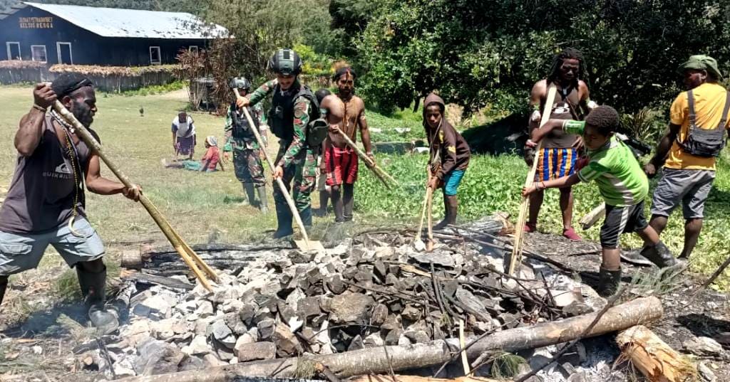 Tradisi Bakar Batu dari Papua bukan sekadar acara makan bersama, tetapi memiliki makna yang sangat dalam. Bagi suku-suku pegunungan seperti Dani, Lani, dan Mee, batu panas melambangkan kekuatan leluhur serta keteguhan hidup. Uap panas yang muncul dari lubang masak menjadi simbol kehangatan kebersamaan karena seluruh warga kampung, mulai dari yang tua hingga anak-anak, ikut terlibat. Semua proses dilakukan secara gotong royong dengan pembagian peran yang rapi, di mana laki-laki menyiapkan batu sementara perempuan mengolah makanan.