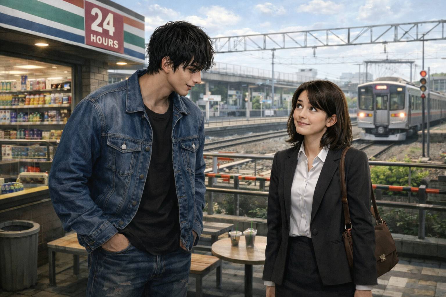 aku sedikit meringis sambil mengangguk. Aku tidak berusaha meneruskan jawaban dengan berkata “tidak apa-apa”, aku terlalu lapar untuk bereaksi. Aku berjalan menuju kasir dan membayar, tak lama kulihat pria itu juga akan membayar makanannya dan berdiri persis di belakangku. Setelah membayar onigiri, aku duduk di sebuah bangku yang menghadap ke rel kereta, membuka bungkus onigiri dan mencoba menikmati makananku. Tak lama pria yang kulihat di minimarket itu berjalan seolah menghampiri dan ternyata ia benar-benar duduk di sampingku.