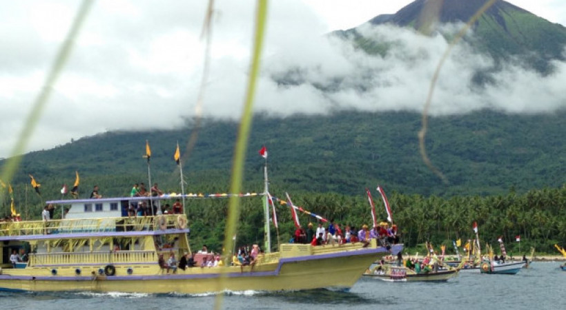 Prosesi tradisi Kololi Kie, di mana masyarakat melakukan ritual keliling pulau dengan perahu.