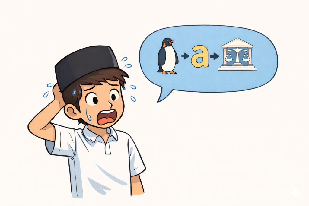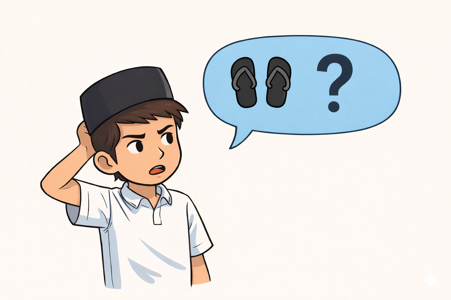 “Pak, asli, saya bukan kolektor sendal curian! Ini… ini sendal saya, Pak!” oceh Kenzo dengan kecepatan seribu kata per detik.