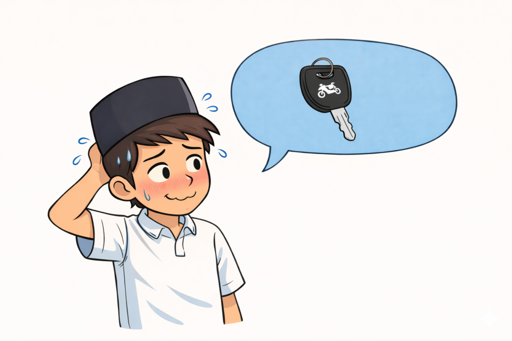 Kenzo terdiam sejenak, mencoba menggunakan sisa logikanya yang baru saja kembali dari “mode panik”. “Cek coba kantong koko, celana, atau tas Bapak. Siapa tahu nyelip.”