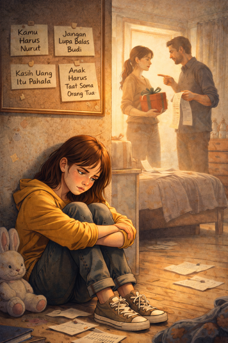 Bahwa cinta dalam keluarga seharusnya nggak terasa seperti transaksi atau hitung-hitungan. Ketika kasih sayang terus diungkit sebagai “jasa” yang harus dibalas, anak bisa merasa lelah dan kehilangan makna dari cinta itu sendiri. Puisi ini ingin menyampaikan bahwa anak bukan investasi, tapi individu yang butuh diterima tanpa syarat. Intinya, hubungan yang sehat itu lahir dari ketulusan dan empati, bukan dari kewajiban atau keharusan untuk membayar balik.