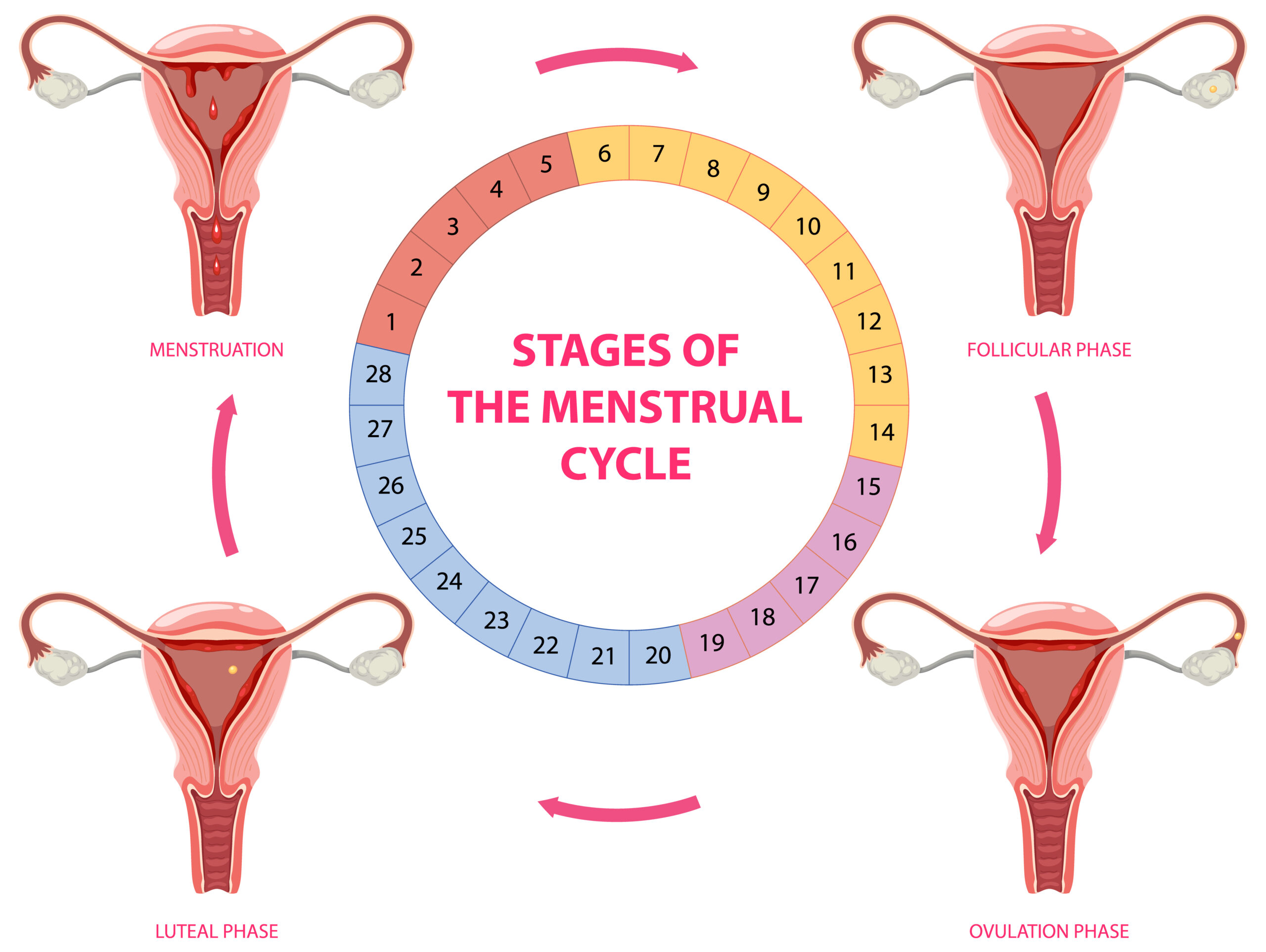 • Fase Menstruasi: Saat haid atau menstruasi, hormon akan menurun sehingga dapat menyebabkan kram di bagian tubuh dan perasaan gelisah. Jadi kemungkinan stres lebih tinggi.